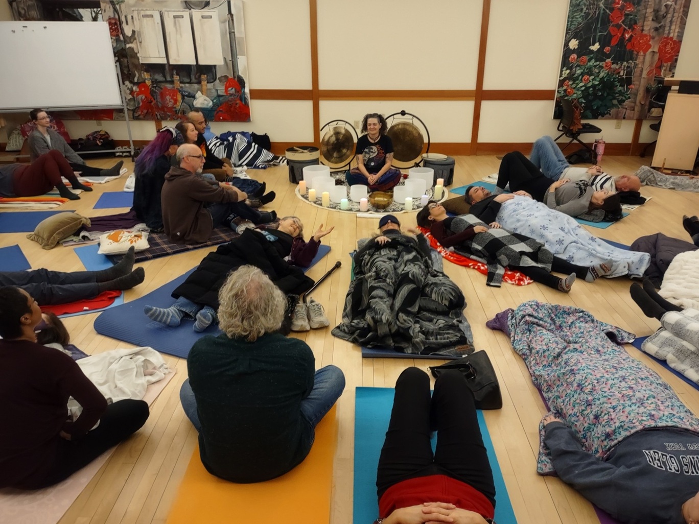 On Saturday, January 17, 2026, from 6:00 to 7:30 PM, the Buddhist Faith Fellowship hosted a transformative Winter Sound Bath experience at the Mansfield Freeman Center in Middletown, CT, with the serene Shôyôan Teien Japanese Garden as our backdrop. Nearly 40 participants joined us in person for this restorative immersion, led by the gifted Kris Emory—a certified Reiki Master, Crystal Healer, and Sound Healer with nearly 30 years of experience, drawing from her Cherokee Nation heritage.
