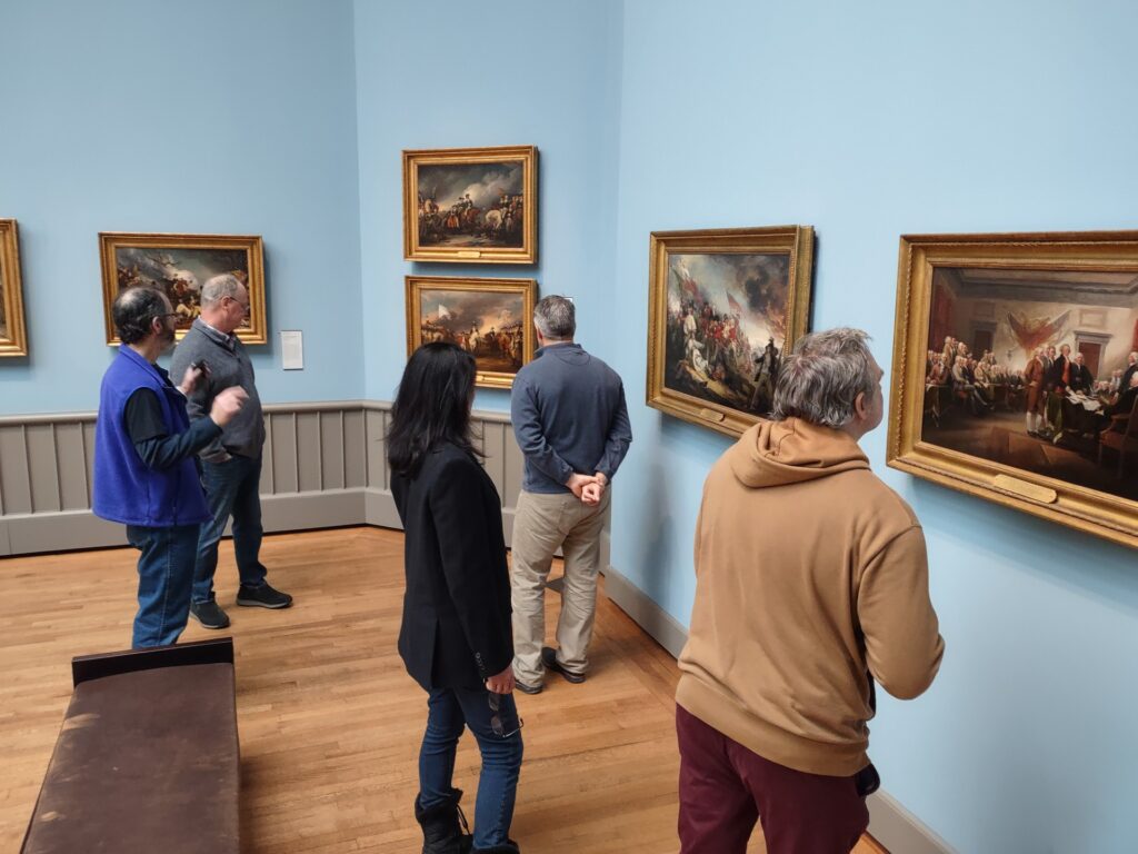 Our Saturday, January 31, 2026 field trip to the Yale University Art Gallery was a rich and enjoyable afternoon of art, learning, and community. During our two-hour visit, we explored Buddhist art—especially the fascinating Gandharan tradition, with its blend of Greco-Roman and Buddhist influences—alongside works from Indonesian, Greco-Roman, and modern collections, including pieces by Picasso, Léger, and Dalí. We also enjoyed viewing the historic paintings of John Trumbull, the American Revolutionary artist and Connecticut native.